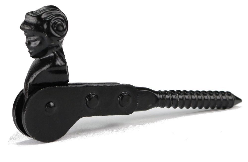 Fensterladenhalter schwarz mit nostalgischem Kopf Beschreibung Ideal zum Feststellen von geöffneten Fensterläden Hochwertiger Fensterladenhalter mit arretierbaren Feststeller-Kopf nostalgisches Design mit Köpfchen – schwarz lackiert mit Schraubgewinde zum Befestigen im Mauerwerk Gesamtlänge ca. 130m… Mehr