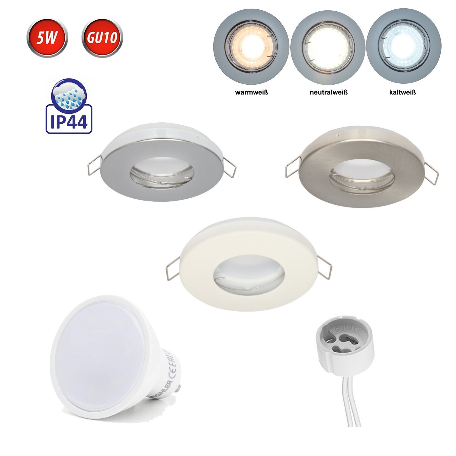 GU10 Einbaustrahler Einbaurahmen 5W LED IP44 Wasserdicht Rund Alu