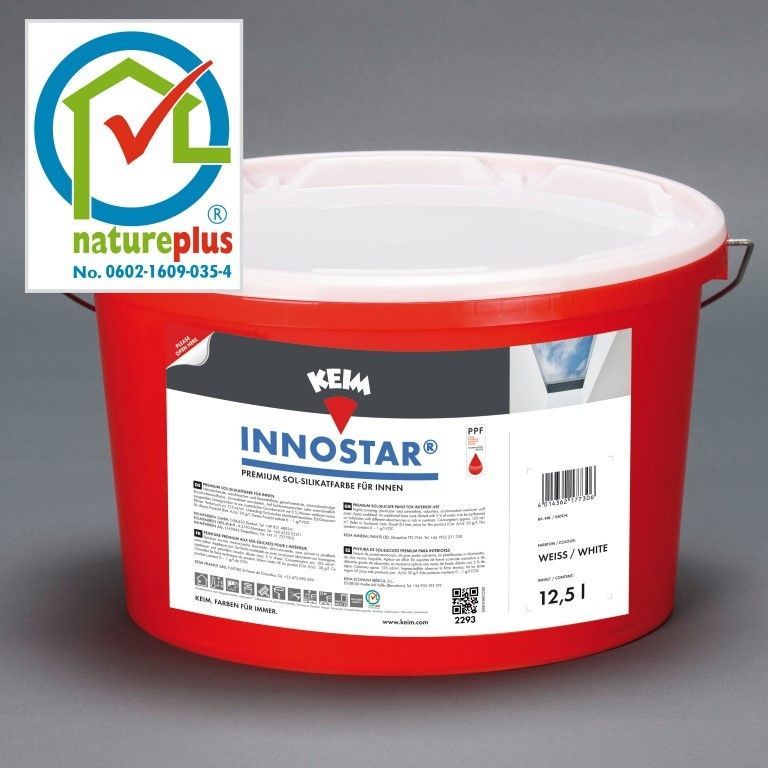 KEIM Innostar® 2,5 Liter weiß Details für Innostar® 2,5 Liter weiß: KEIM Innostar® ist eine ultradeckende, hochergiebige anwendungsfertige Sol–Silikatfarbe für innen. Die Einschichtfarbe KEIM Innostar ist wohngesund, ohne Zusatz von Konservierungsmittel und verbindet maximale Deckk… Mehr