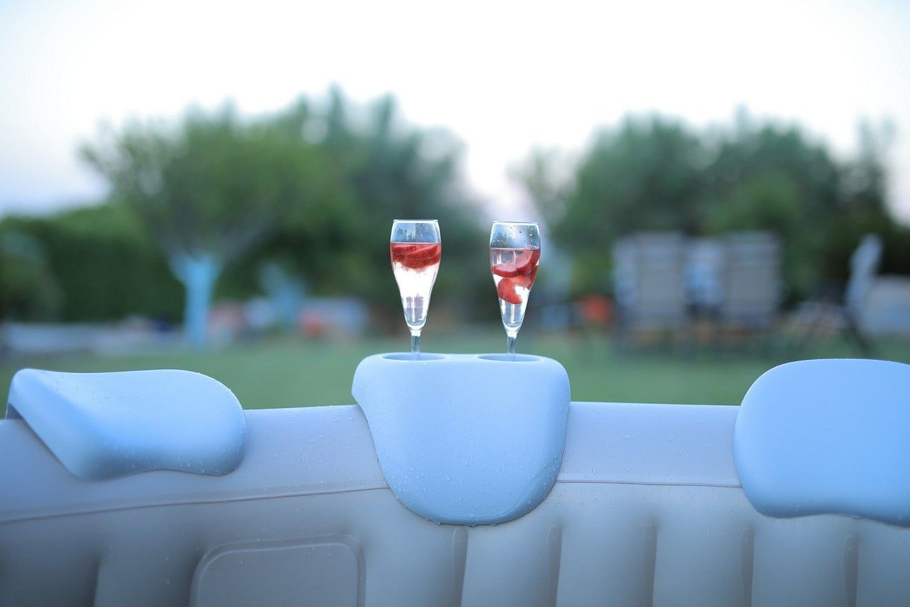 bestehend aus 2 Stück Nackenkissen und 1 Stück Getränkehalter, passend für alle MSPA Pools außer Mono und Tuscany – auch einsetzbar für andere Whirlpools.