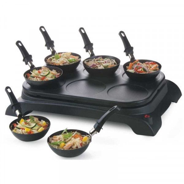 Party-WOK-Set DOMO DO8710W Pfannkuchen-Maker WOK-Set mit 6 Pfannen – starke 1000 Watt – ideal für einen gemütlichen Abend Party-WOK-Set für 6 Personen mit trendigen Pfännchen lassen sich diverse leckere Speisen direkt am Tisch zubereiten. Es ist besonders für einen gemütlichen Abend mit Freunden ode… Mehr